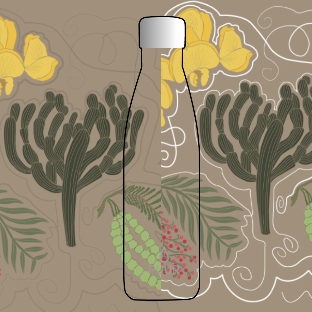 El diseño está inspirado en la flora endémica del norte grande, por su capacidad de mantener la zona con vida a pesar de ser este el lugar más árido del país. La aridez la representamos a través del color y la textura del fondo.