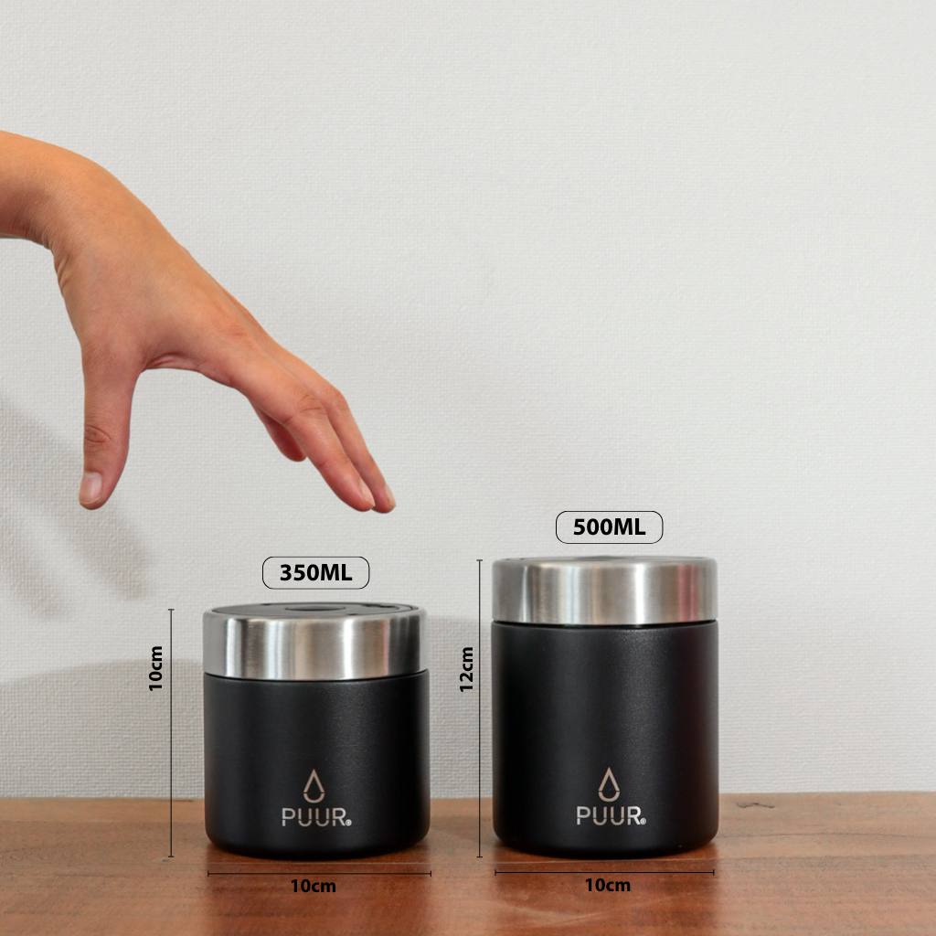 Nuestros termos de comida PUUR puedes encontrarlos en dos distintas capacidades: 350 ml y 500 ml.