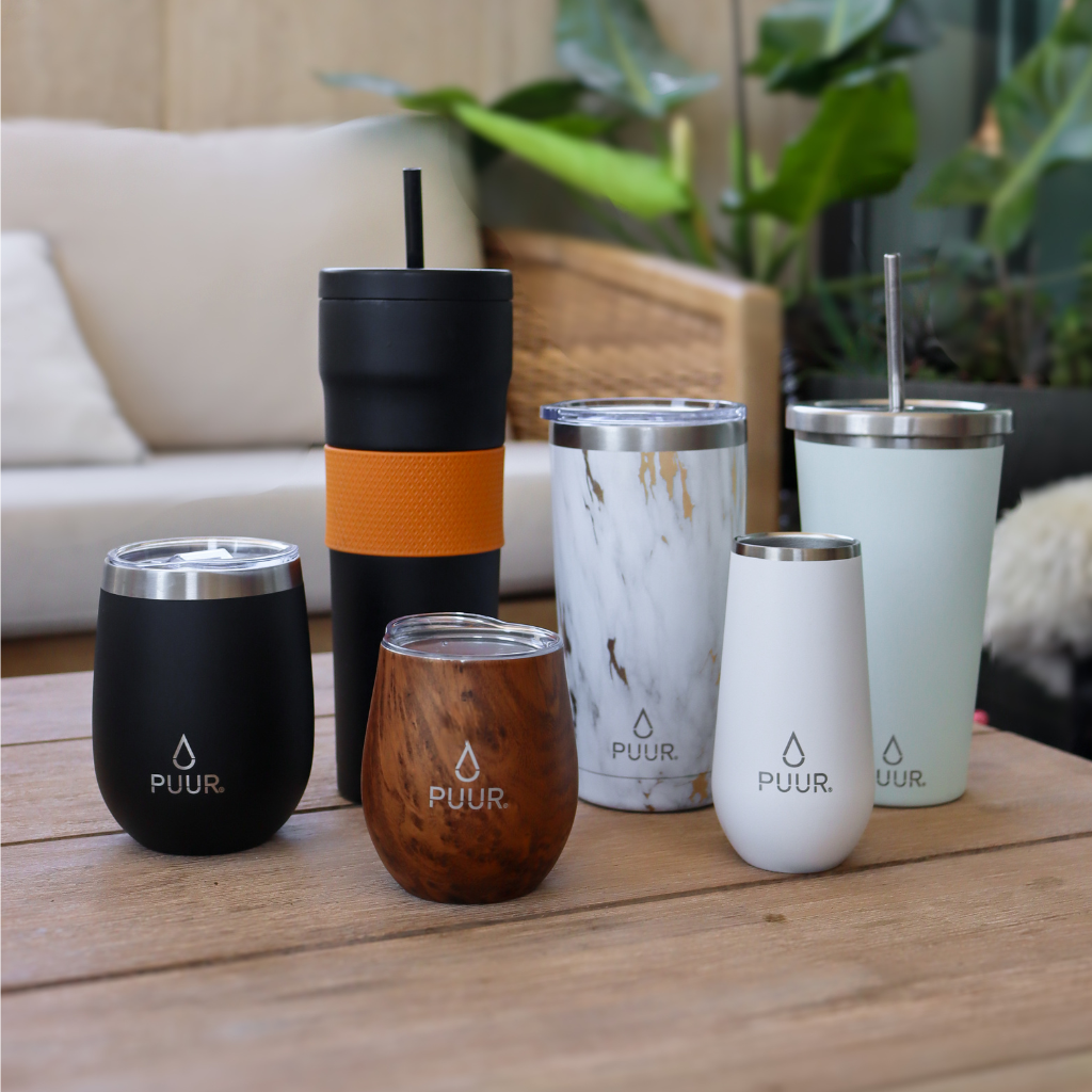 Los vasos térmicos Puur están hechos de doble capa de acero inoxidable 304 o grado alimento y una capa de cobre en su interior. Su doble pared y sello inferior impiden la variación extrema de temperatura y evita que transpire al contacto con la mano.