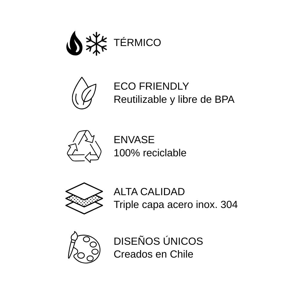 Disfruta de tu bebida favorita con nuestro vaso térmico. Fabricado con triple capa de acero inoxidable 304 más una película de cobre en su interior que garantiza que tus bebidas se mantengan frías y calientes por un timepo prolongado. Diseñado para disfrutar de tu mate, o cóctel favorito, este vaso no experimenta condensación exterior y es completamente libre de BPA, además de ser 100% reutilizable.