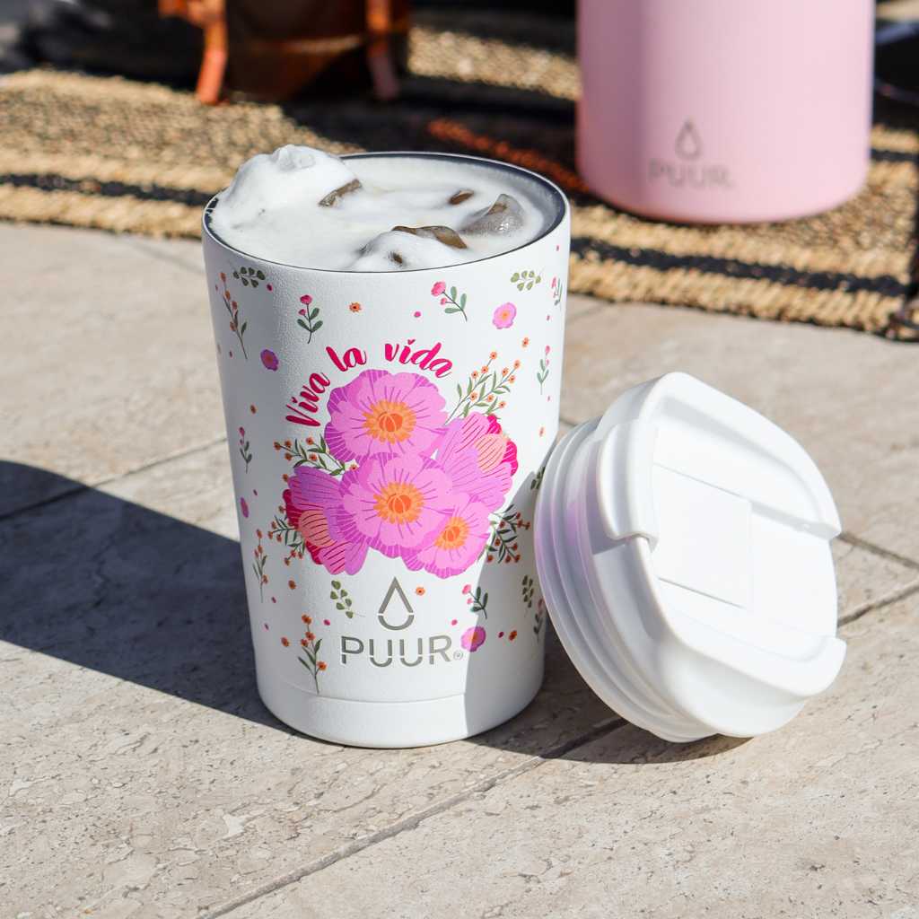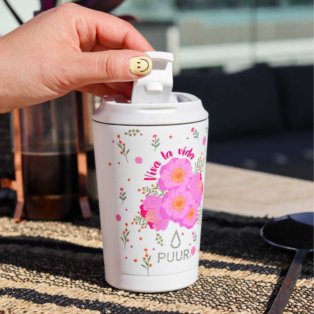 PRE VENTA. Nuestro nuevo Vaso Térmico Puur Mug Viva La Vida Hermético 350 ml es una invitación a disfrutar cada momento con color y alegría. Inspirado en la energía vibrante de las flores, este vaso se convierte en el aliado perfecto para acompañarte durante todo el día.